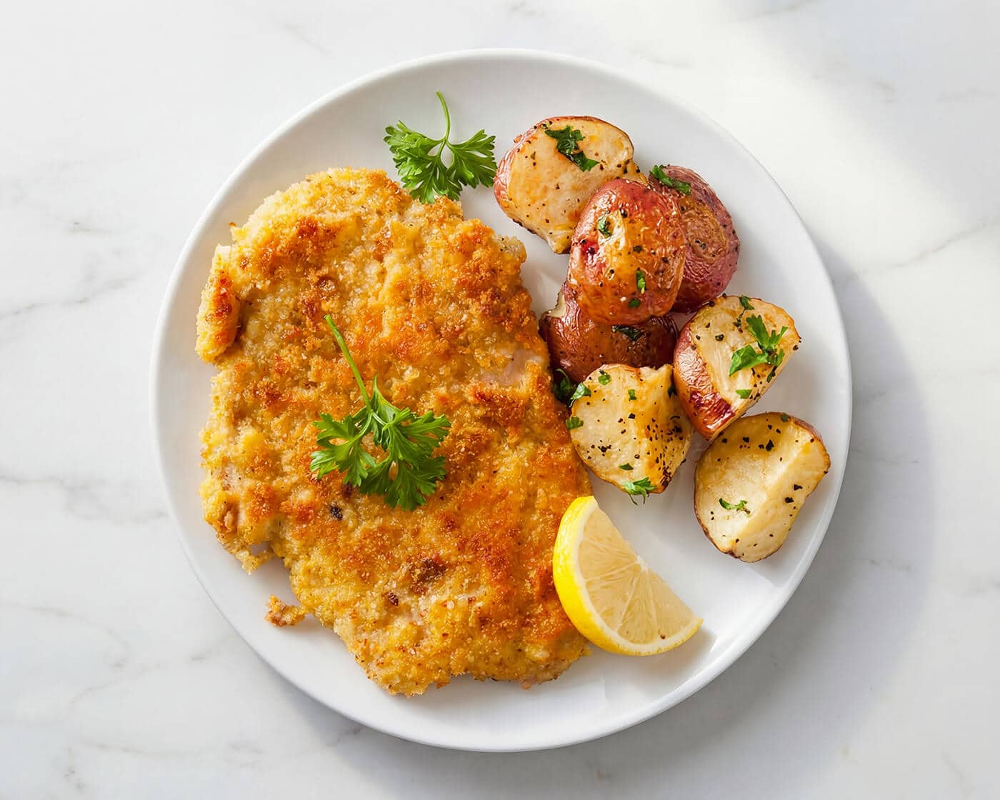 Chicken Schnitzel is inspired by the classic Austrian dish “Wiener Schnitzel,” which traditionally uses thin slices of veal coated in breadcrumbs and fried until golden. It is commonly served with lemon slices, fries, or potato salad. This version uses chicken breast, making it a popular and delicious alternative.