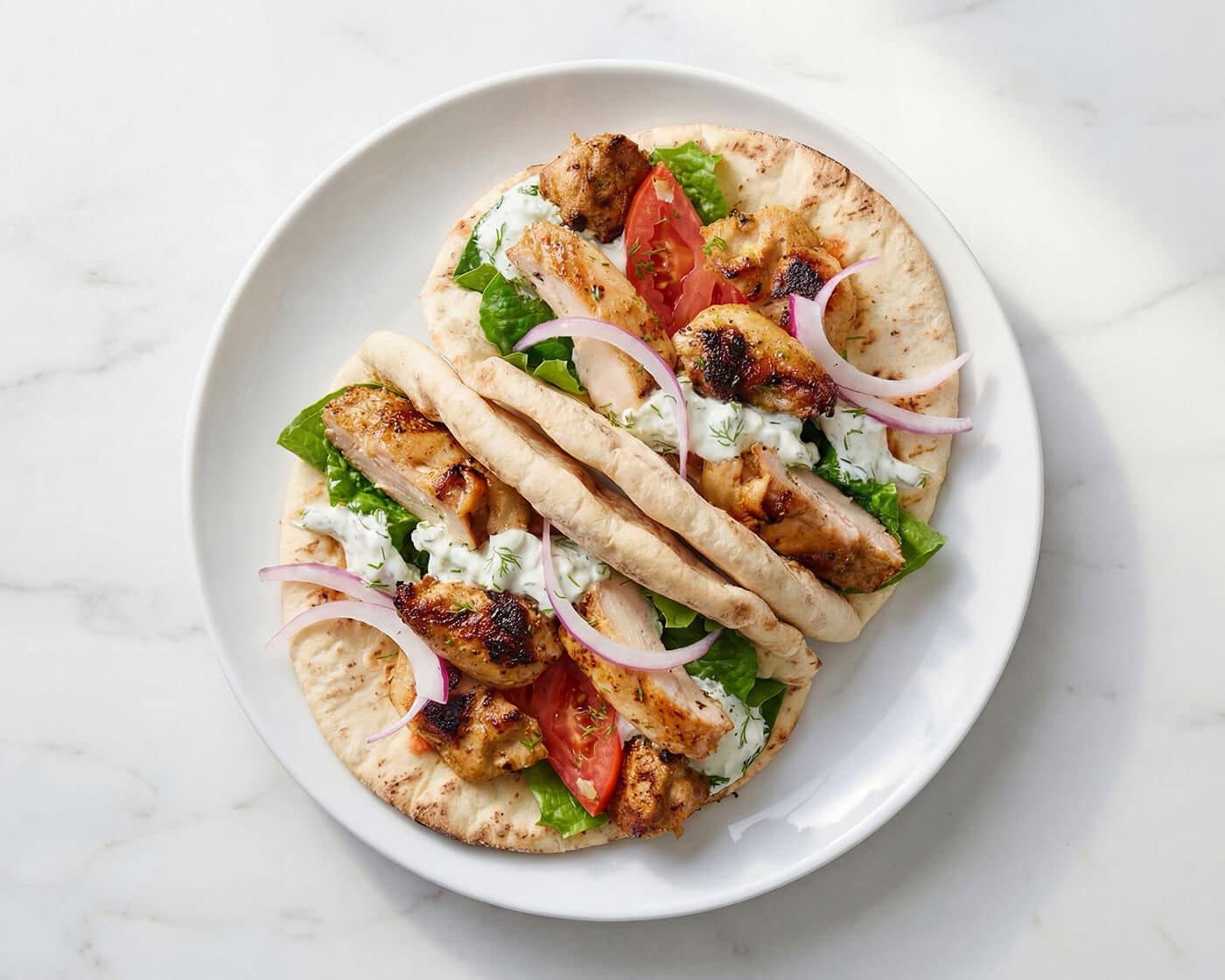 The yogurt marinade helps keep the chicken tender and flavorful. Combined with classic gyro toppings like tomatoes, cucumber, onions, and olives, this dish makes a quick and satisfying meal.